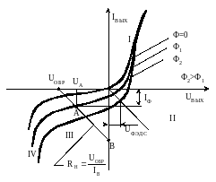 Область I соответствует фотодиффузионной области. Здесь к p-n переходу прикладывается прямое напряжение и диффузионная составляющая тока полностью подавляет фототок (Ip-n >> IФ), что делает невозможным управление фототоком.