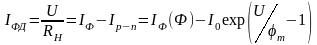 В области II реализуется фотогальванический режим. Здесь ток фотодиода определяется из выражения