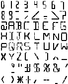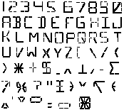 Рис. 7.26. Полный точечно-матричный шрифт 5x7; формат (а); типичный набор символов кода ASCII (б).