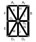 Рис. 7.23. 14-сегментный шрифт: формат и обозначение сегментов (сегменты A и D состоят из двух половинок, которые возбуждаются одновременно) (а); типичный набор отображаеых символов (б).