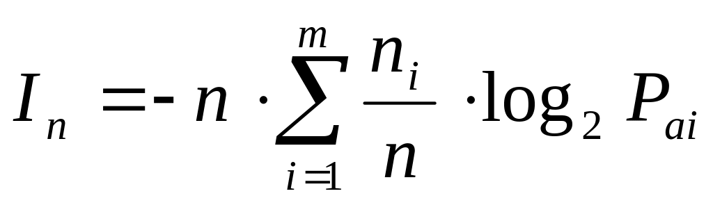 Очевидно, что полное количество информации (In), содержащееся в сообщении из n символов, равно сумме количеств информации содержащихся во всех m символах алфавита.