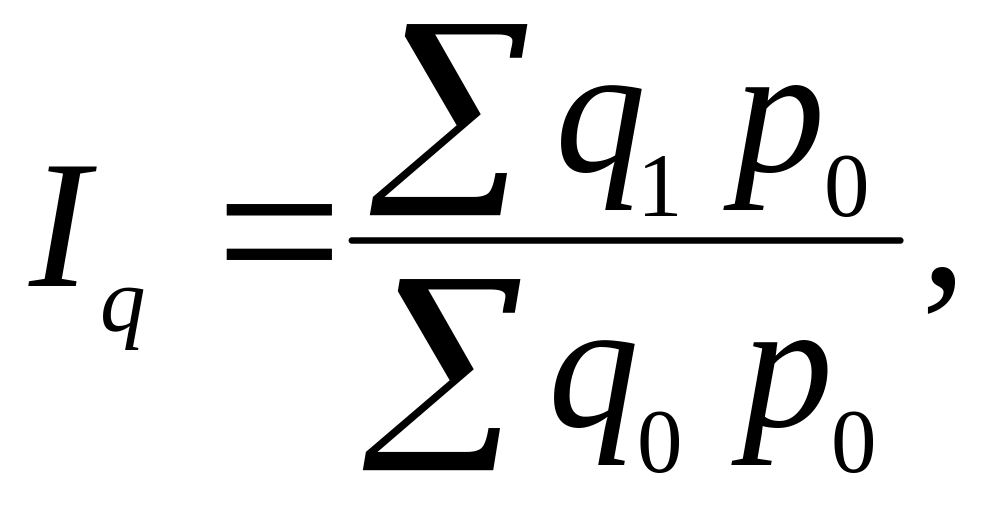 где: – объем продукции каждого вида изделий соответственно отчетного и базисного периодов (индексируемый показатель);