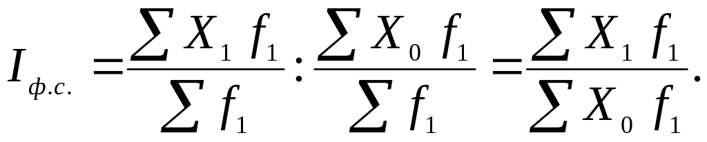 На изменение среднего значения показателя Х оказывает влияние как изменение значений осредняемого признака Х, так и изменение весов f. Если в числителе и знаменителе сводного индекса веса берутся (фиксируются) на уровне одного и того же периода, то он называется индексом фиксированного состава и определяется по формуле: