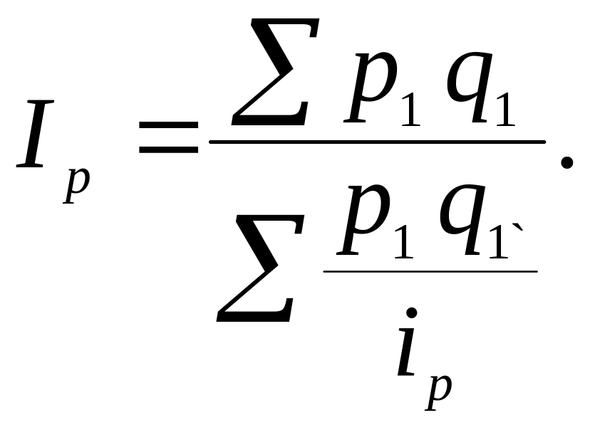 В нашем примере известен товарооборот в отчетном периоде , а товарооборота в ценах базисного периода нет, но заданы индивидуальные индексы цен по каждому виду изделий , которые определяют по формуле: