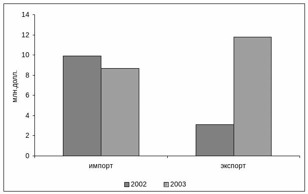 Отсутствие необходимых статистических данных не позволят точно определить, является ли Тюменская область нетто-импортером или нетто-экспортером в агропродовольственной торговле. Хотя есть основания предположить, что экспорт и вывоз в другие области достаточно развит в регионе, то есть отдельная продукция области вполне конкурентна на внешнем рынке. Во-первых, в отдельные годы экспорт продовольствия за рубеж превышал импорт (Рис.9). Во-вторых, динамика потоков по отдельным продуктам демонстрирует экспортную специализацию области по этим товарам (Рис. 10, Рис. 11, Табл. 8). Так, в торговле яйцом и яйцепродуктами проявляется явная ориентация на вывоз этих товаров за пределы области, причем с каждым годом эта тенденция усиливается. Падение объемов ввоза и рост вывоза масла животного и крупы привел к тому, что в 2003 г. по этим продуктам область стала нетто-экспортером в межрегиональной торговле, а значит, область начинает реализовать конкурентные преимущества в производстве и этих продуктов.