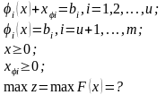 max {F(x)|xj≥0, j=1,...,n; φi(х)≤bi, i = 1,...,m}. (3.8.29)