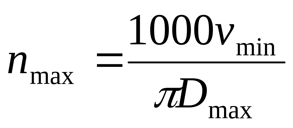 Для приводов с главным вращательным движением nmax и nmin – максимальная и минимальная частоты вращения шпинделя, определяемые по предельным (максимальным и минимальным) для всех операций скоростям резания vmax и vmin и предельным для них же размерам обработки Dmax и Dmin: