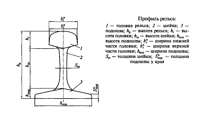 Рельсы предназначены для направления движения колес подвижного состава, восприятия нагрузки от него и передачи ее на шпалы. Кроме того, на участках с автоблокировкой рельсы служат проводниками сигнального тока, а при использовании электротяги — проводниками обратного тягового тока. Для надежной работы рельсы должны быть достаточно прочными, долговечными, износоустойчивыми, твердыми и в то же время нехрупкими, так как они воспринимают ударно-динамическую нагрузку. Материалом для их изготовления служит высокопрочная углеродистая сталь. В зависимости от массы и поперечного профиля рельсы подразделяют на несколько типов: Р50, Р65 и Р75. Буква Р означает рельс, а число — округленное значение массы, кг, одного погонного метра рельса. Поскольку наибольшее воздействие на рельс оказывает вертикальная нагрузка, стремящаяся изогнуть его, рациональной формой рельса считается двутавровая, одновременно обеспечивающая и меньший расход металла.