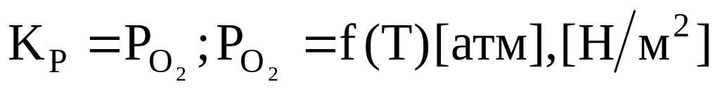 Величина равновесного парциального давления кислорода, зависящая от температуры называется упругостью диссоциации оксида. Упругость диссоциации химического соединения – концентрация единственного газообразного компонента в равновесной системе.