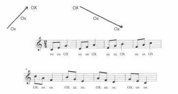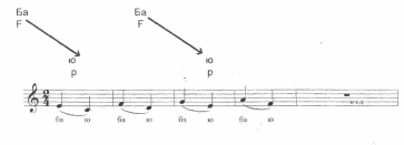 Пропевание staccato, legato, non legato в разных ритмических рисунках.