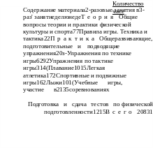 При использовании игры в качестве основного средства оздоровительной тренировки ее содержание необходимо расширить за счет других видов физических упражнений. Примерный план занятий игровыми видами спорта с оздоровительной направленностью показан в таблице 12.