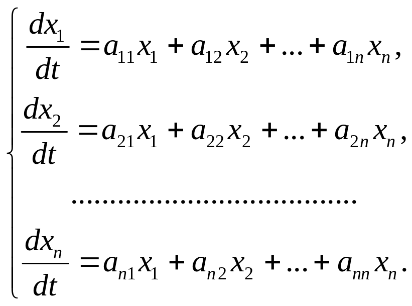 Пусть дана система линейных дифференциальных уравнений с неизвестными функциями, коэффициенты которой постоянные: