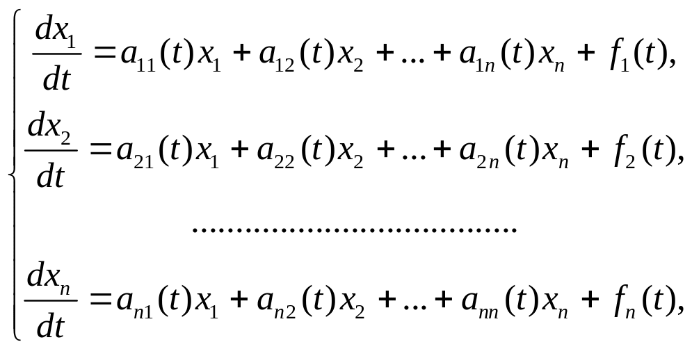 Нормальная линейная неоднородная система дифференциальных уравнений имеет вид