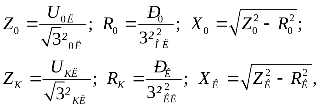 За відомими виличинами опорів неробочого ходу та короткого замикання визначають параметри заступної схеми трансформатора із виразів: