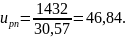 Фактическое значение передаточного числа привода (в соответствии с таблицей):