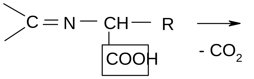 Особенность для α-аминокислот: на стадии изомеризации α-аминокислота подвергается декарбоксилированию: