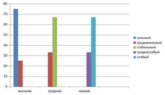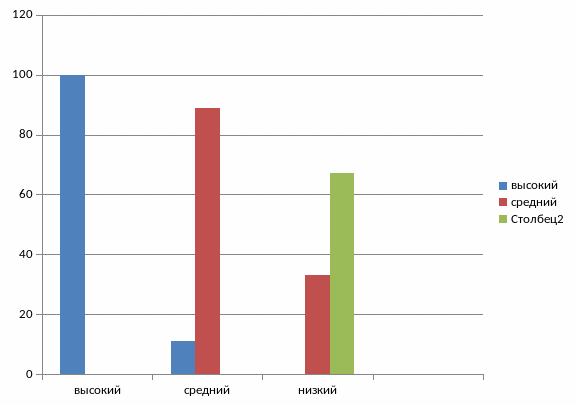 На основании исследования по методике ВСК все участники эксперимента были разделены на два уровня: