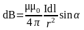 Определение индукции поля, создаваемого элементом тока длиной dl