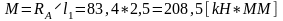 Изгибающий момент в опасном сечении оси (рис. 1.11), кНмм