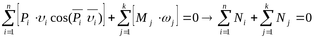 мұнда Рi – берілген күштер; i – Рi күштерінің түсу нүктелерінің жылдамдықтары Рi ; j – Мj моменттері түсірілген звенолардың айналу жылдамдықтары; Ni, Nj – Рi күштері мен Мj моменттерінің қуаттары.