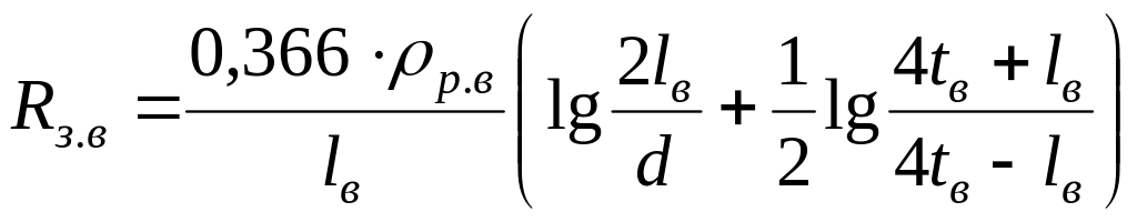 4) Визначається опір розтікання одного вертикального заземлювача Rз.в, Ом, за формулою:
