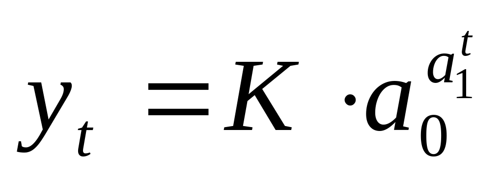 Построение таких функций ничем не отличается от построения уравнений парной регрессии (линейной или нелинейной) с учетом того, что в качестве зависимой переменной используются фактические уровни временного ряда уt а в качестве независимой переменной моменты времени t = 1,2, ..., n.
