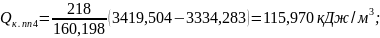 Тепловосприятие четвертой ступени конвективного пароперегревателя, кДж/м3