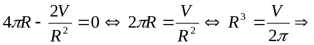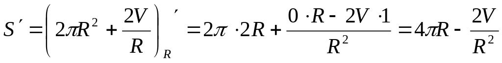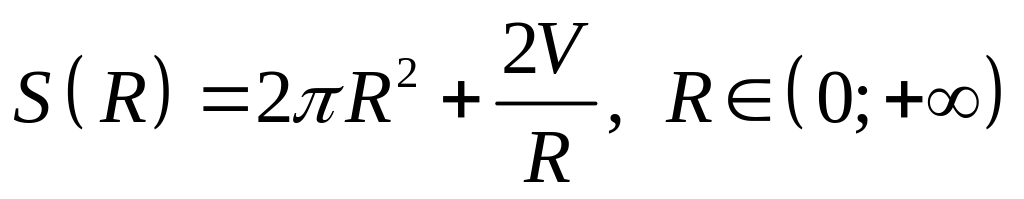 Составим площадь полной поверхности цилиндра как функцию одной переменной R: