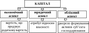 Дослідження власного капіталу потребує з’ясування сутності капіталу. Найважливішими аспектами розкриття сутності капіталу є економічний, юридичний, обліковий капітал (див. рис.1.1.)
