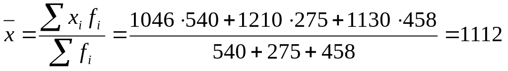 Предположим, что мы располагаем только данными о средней заработной плате и численности работников (гр.1 и 3), т.е. нам известен знаменатель исходного соотношения, но не известен его числитель. В этом случае фонд заработной платы можно получить умножением средней заработной платы ( xi ) на численность ППП ( fi ). Поэтому общая средняя может быть рассчитана по формуле средней арифметической взвешенной: