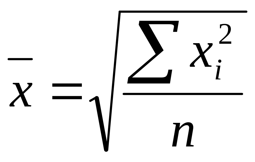 Средняя квадратическая. Используется для измерения степени колеблемости индивидуальных значений признака вокруг средней арифметической в рядах распределения. Так, при расчете показателей вариации среднюю вычисляют из квадратов отклонений индивидуальных значений признака от средней арифметической величины.