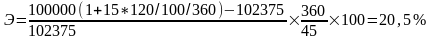 Эффективность данной операции по учету векселя в банке для векселедержателя составляет: