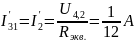 Найдем ток и разность потенциалов между точками 4,2 в первой цепи, а также ток в разветвленной части: