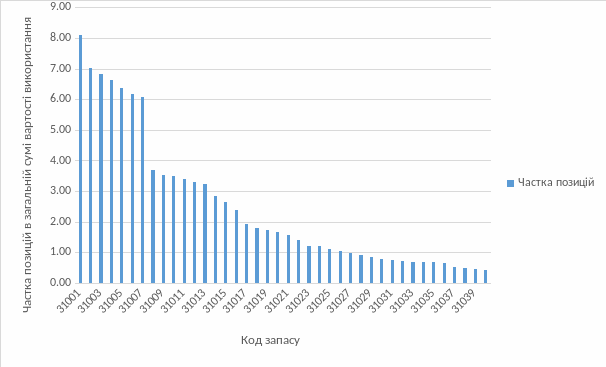 Рис. 3.1. Кумулятивна крива щільності розподілу % вартості