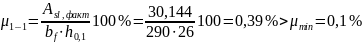 Процент армирования в каждом расчетном сечении плитной части должен быть не менее минимально допустимого: