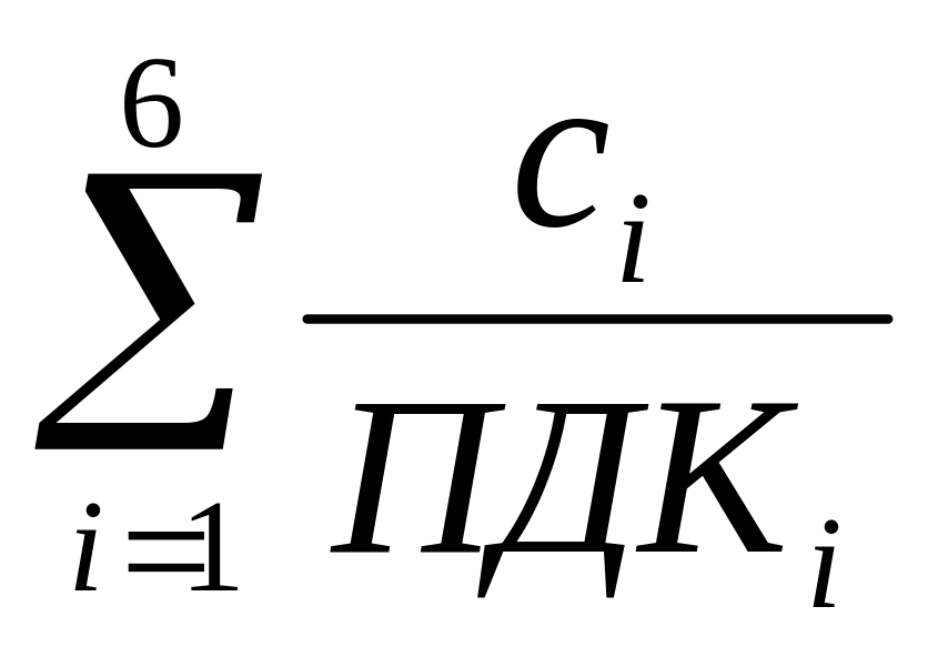 71. При одновременном присутствии в атмосферном воздухе нескольких веществ, обладающих суммирующим действием, сумма отношений их фактических концентраций к предельно допустимым не должна превышать: