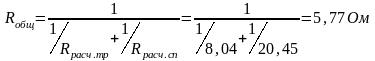 Для защиты людей от поражения электрическим током применяется защитное заземление, основой защиты у которого является заземляющее устройство при условии, что сопротивление его растеканию электрического тока не должно превышать допустимых величин, предусмотренных ПУЭ и ГОСТ ССБТ 12.1.030-81 «Электробезопасность. Защитное заземление, зануление». Поэтому всё оборудование цеха соединяется с заземлением. В соответствии с требованиями ГОСТ ССБТ 12.1.030-81* допустимое сопротивление заземляющего устройства Rдоп при напряжении 220 Вт составляет 8 Ом. Общее сопротивление заземляющего устройства определяется по формуле: