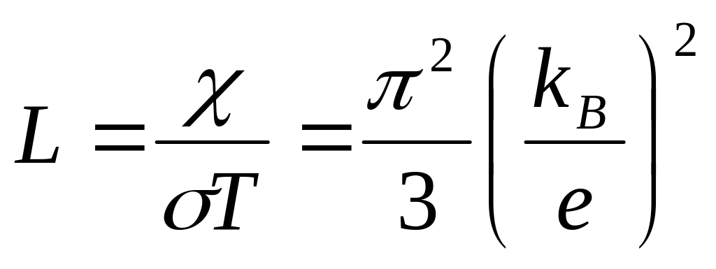 Закон Видемана – Франца утверждает, что для металлов при не очень низких температурах отношение коэффициента теплопроводности к удельной электрической проводимости прямо пропорционален ~ , причем коэффициент пропорциональности является универсальной постоянной.