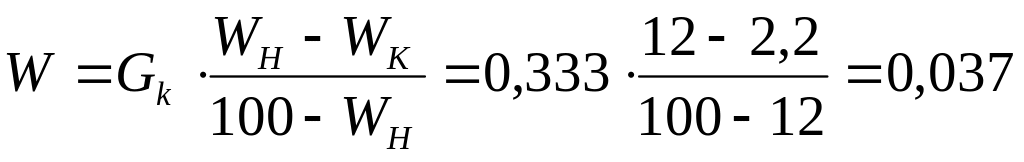 Из уравнения материального баланса сушильной установки определим расход влаги W, удаляемый из высушиваемого материала: