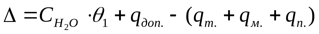 Разность между удельными приходом и расходом тепла непосредственно в сушильной камере: