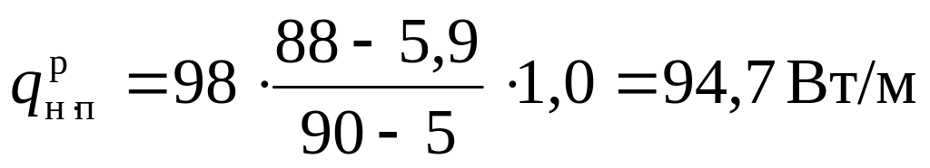 Значения плотностей теплового потока при других заданных температурах теплоносителя и окружающей среды, а также для других территориальных районов определяются по формуле