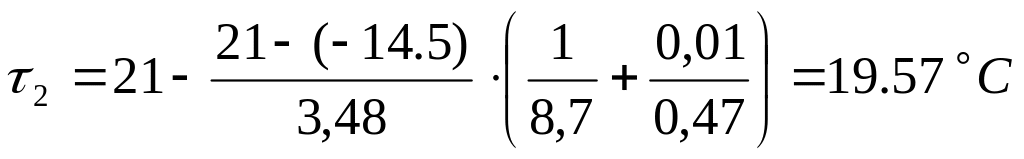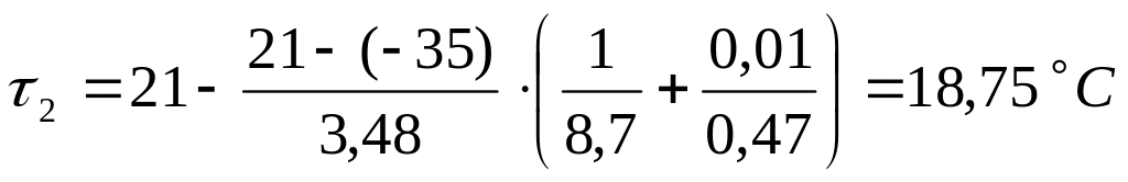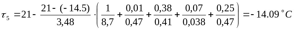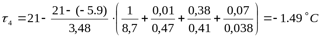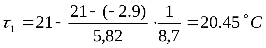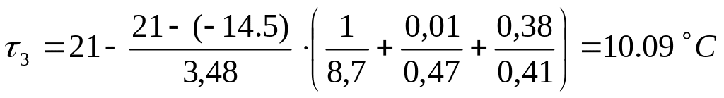 Рассчитать температуру в любом слое ограждения можно по формуле:
