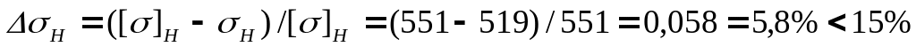 т.е. условие контактной усталостной прочности передачи выполнено. При этом