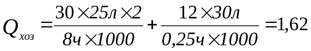 Расчёт воды на хозяйственные нужды рассчитывается по формуле: