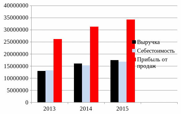 Таким образом, на рисунке 5 показано изменение по годам выручки от продаж, себестоимости и прибыли от продаж. Все показатели 2015 года превышают показатели предыдущих лет.