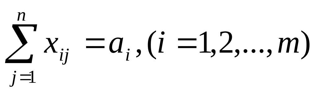 Математическая модель закрытой транспортной задачи записывается в виде: