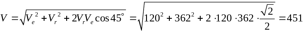 Модуль абсолютной скорости определяем по формуле