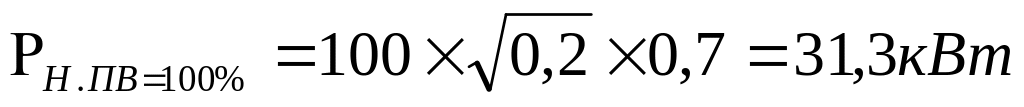 Мощности электроприемников, работающих в ПКР, приводим к ПВ = 100% и выражаем в кВт [2]: