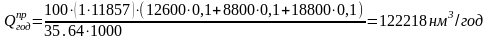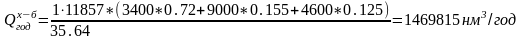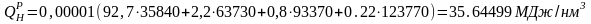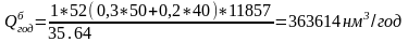 Q - низшая теплота сгорания газа ; мДж/нм3
