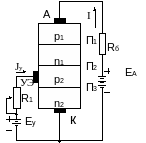 Тиристор – полупроводниковый прибор с тремя и более p – n – переходами, ВАХ имеет участок отрицательного сопротивления. Тиристор - прибор с двумя устойчивыми режимами работы (включен, выключен).